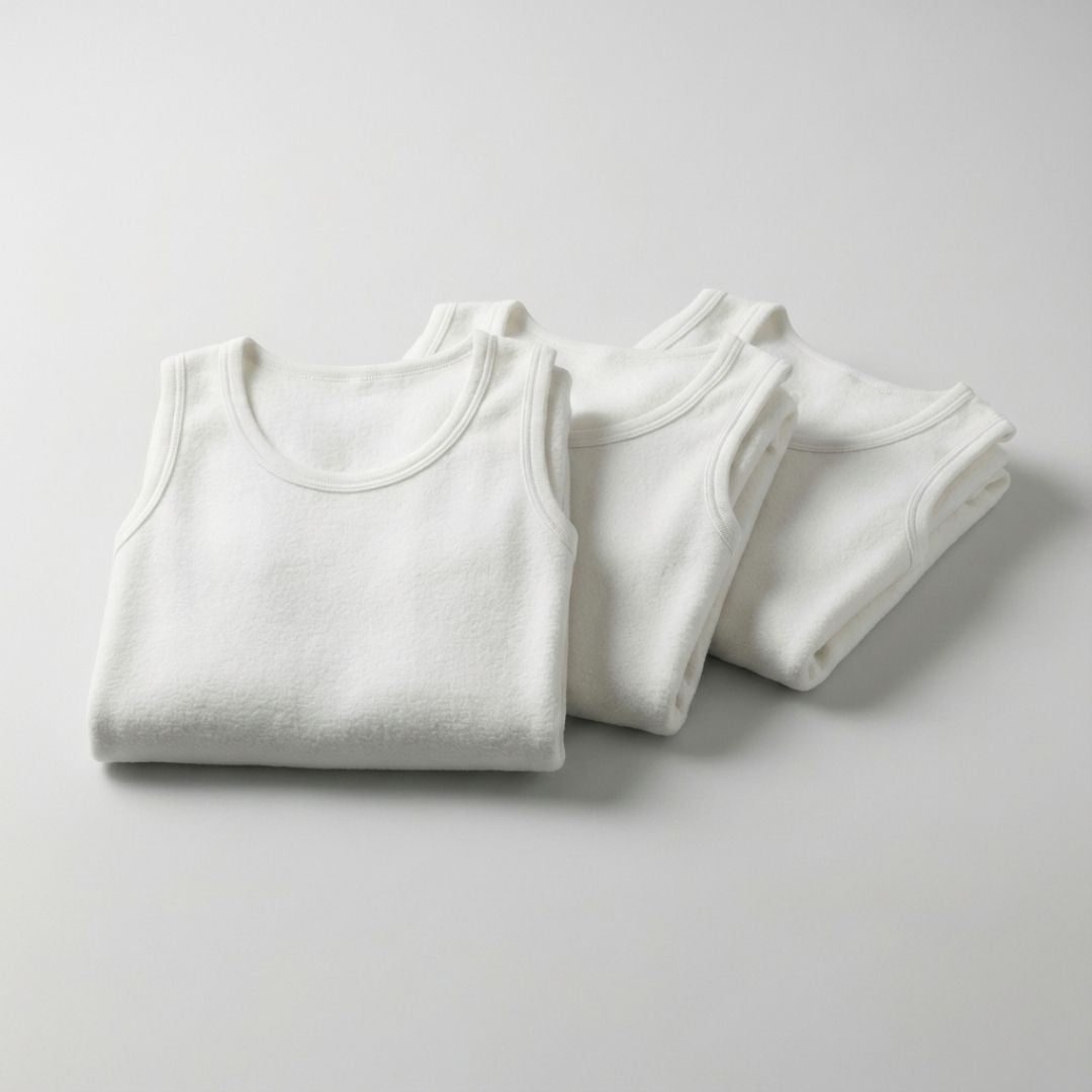 Sixer Men’s Interlock Winter Vest Pack of 3 – White | Soft Cotton Everyday Undershirt